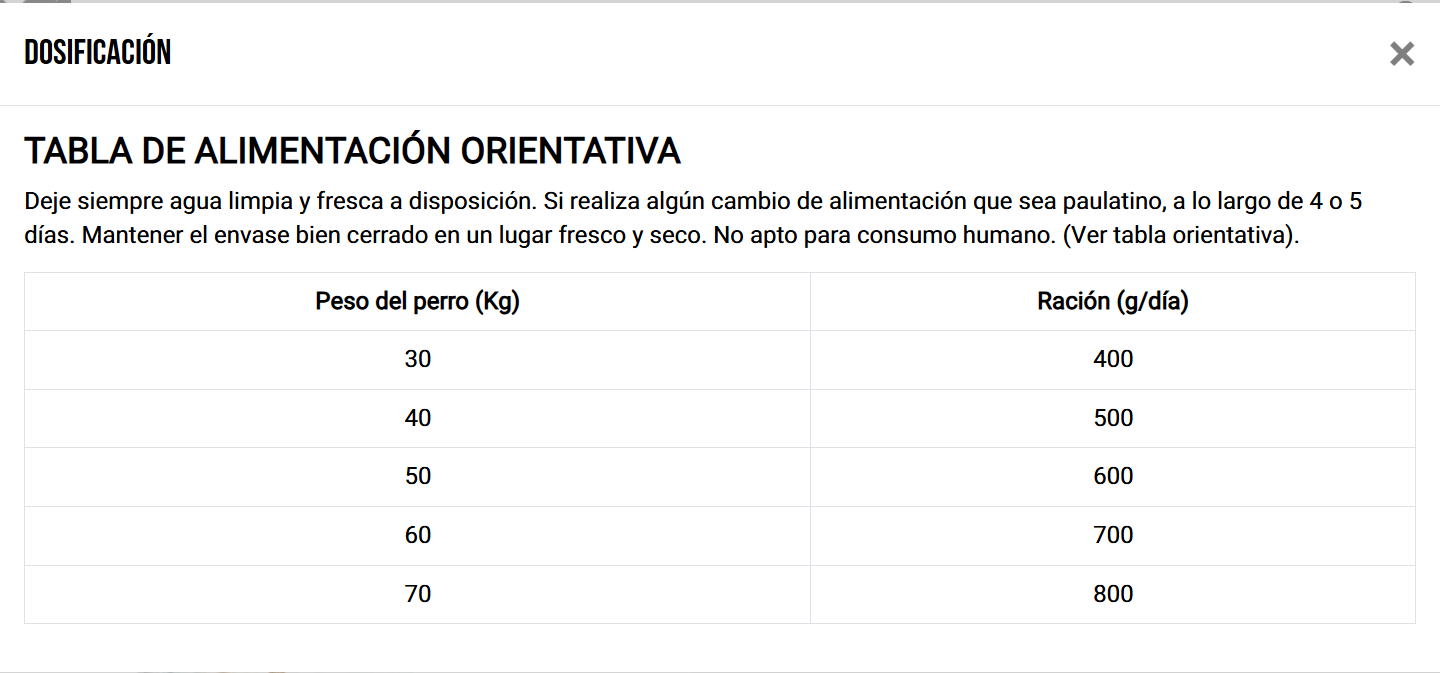 Conservantes, antioxidantes (Tocoferoles naturales). Aditivos nutricionales/kg: Vitaminas: Vitamina A 18.500 U.I., Vitamina D3 1.875 U.I., Vitamina E (acetato de todo rac-α-tocoferilo) 100 mg. Oligoelementos: Hierro (como carbonato de Hierro (II)) 200 mg, lodo (como Iodato de calcio anhidro) 1,8 mg, Cobre (como sulfato de cobre (II) pentahidratado) 9 mg, Manganeso (como óxido de Manganeso (II)) 44,5 mg, Zinc (como óxido de Zinc) 150 mg, Selenio (como Selenito sódico) 0,18 mg. Aditivos zootécnicos/kg: Probióticos estabilizadores de la flora intestinal: (Bacillus velezensis (DSM 15544) 100 ppm.